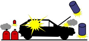 In einem Pkw wurden Propangasflaschen und Behälter mit brennbaren Flüssigkeiten geladen. Durch Undichtigkeiten treten Flüssigkeiten aus, welche sich…